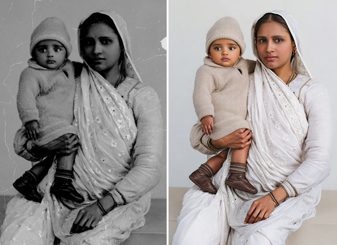 Clear, well-lit photos, whether scanned or taken with your phone, give us the best results. Portraits, family moments, childhood memories, and old prints all restore beautifully. If your photo is especially dark, blurry, or folded, don’t worry. We’ll still do everything possible to bring it back.